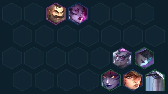 这套阵容的策略的是运营速六找三星艾希,2-1不升人口开3约德尔精致连败攒经济,天胡牌就直接开3辛迪加连胜过渡,2-5直接拉5,上个机器人/德莱厄斯开2保镖,或是根据来牌选择质量高的单卡稳住血量保证五连败。
