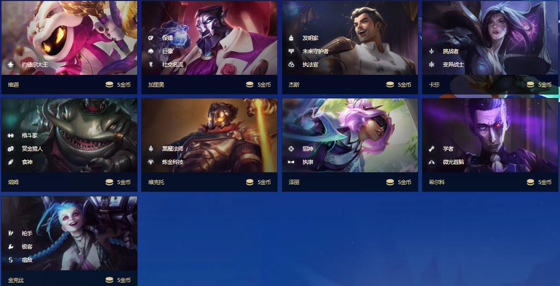 维迦、加里奥、杰斯、卡莎、塔姆、维克托、泽丽、希尔科、金克丝