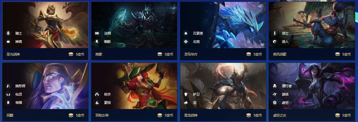 圣光战神、挽歌、灵鸟毕方、疾风剑豪、凤黯、双枪女帝、星龙战神、虚空之女