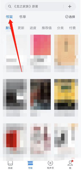 1、首先将自己想看的书籍添加到书架中,然后选择下方的【书架】。