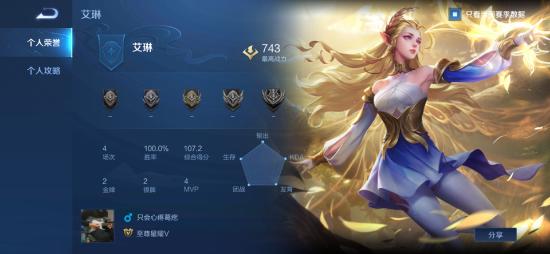 4局游戏拿了4个mvp4个4连,强的离谱,接下来我们开始艾琳的教学,想要冲分的小伙伴赶紧学起来。