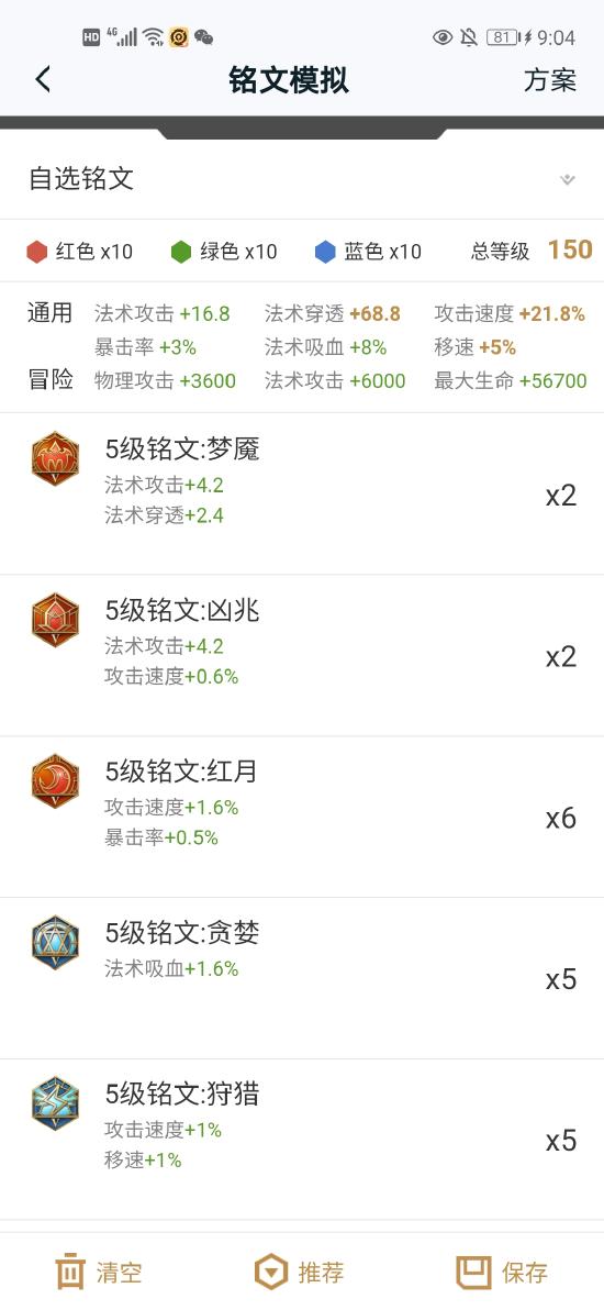 这套铭文出门攻速就能达到第4档攻速配合上68.8的法穿,让你在疲软的前3级可以稳定发育。而到装备成型利用2技能以及圣剑的加成攻速可以达到150