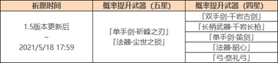 PS:其中「斫峰之刃」「尘世之锁」「千岩长枪」「千岩古剑」为限定武器。