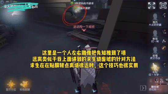 这一个技巧在求生者绕废墟或转点时都是很实用的技巧。凡是求生者贴着游戏模型或建筑物,提前预判求生者走位贴着墙放一个雕像秒夹基本上是能稳稳打出伤害的
