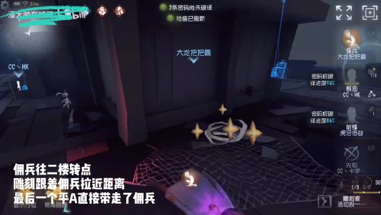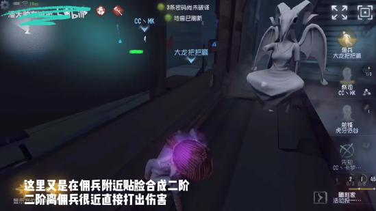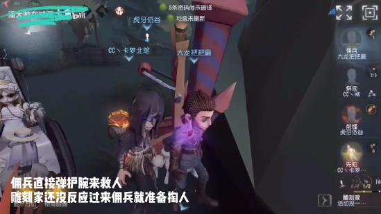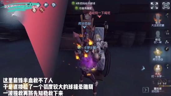 这里佣兵吃了一个雕像后护腕弹到了椅子前直接掏下了先知。这波救人佣兵很优秀,从监管手里掰回了一点局势