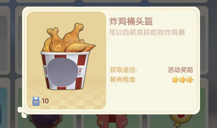 一种是购买套餐获得的炸鸡头套。和美团APP的奖励一样分为摩尔用和拉姆用两种,双人套餐是摩尔用+拉姆用,单人套餐仅有拉姆用的头套。