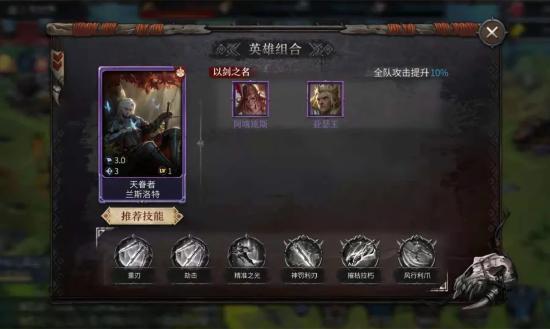 部分英雄会拥有英雄组合,上阵指定的三位英雄,就会获得相对应的属性加成。