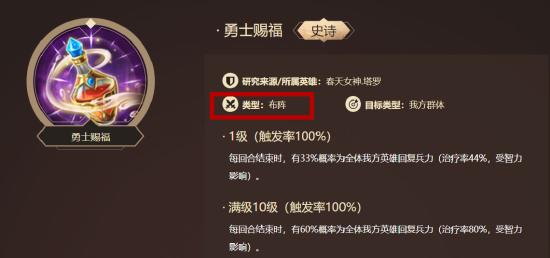 布阵:正式战斗之前的布阵阶段,为己方或敌方英雄提供增益/减益效果。布阵阶段就已经完成了!这是它和BUFF类主被动技能最大的区别。