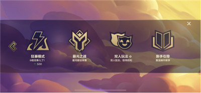 点击之后会出现这时空裂痕(匹配/排位)、英雄之黎明(匹配/排位)、狂暴模式、双人玩法、暮光之战这几种模式供大家选择。