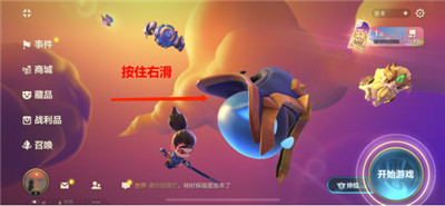 在开始界面按住小小英雄右滑,可以看到学院、微社区、排行榜、赛季、设置这些选项。