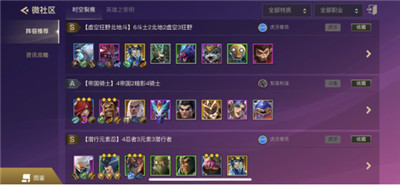 在微社区中可以看到并收藏这两个版本的大神推荐阵容。