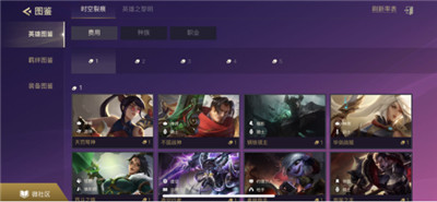 在’微社区‘左下角的‘图鉴’中我们可以详细的看到两个版本的英雄详解、羁绊图鉴与装备图鉴。