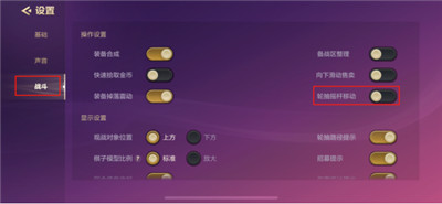 在这里小暮要特别提一下,可能有些小伙伴在选秀时并不习惯用手指点击地图来移动小小英雄。在设置—战斗界面中,找到‘轮轴摇杆移动’选项,打开后就可以用摇杆来控制小小英雄的移动啦。