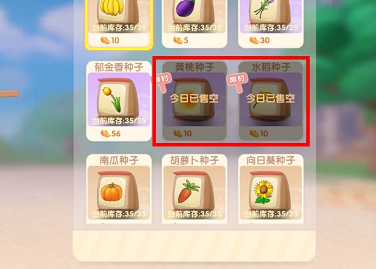 然后,我们来到梅森的种子商店,买上黄桃种子和水稻种子,月饼需要这两种材料制作;买好种子以后在庄园里种出黄桃和水稻的果实成品。