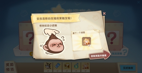 当冒险家点击盲盒出现了调皮小顽猴的时候不用慌张,虽然它会拿走奖励,但只要给它10个迷你豆就可以归还所有奖励同时还随机赠送1个其他奖励哦!