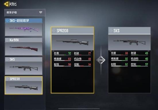 大家可以根据我提供的六维属性来看,尽管在单发伤害上,SPR208依旧远超SKS,但在其余维度上SKS均实现了对SPR208的碾压。