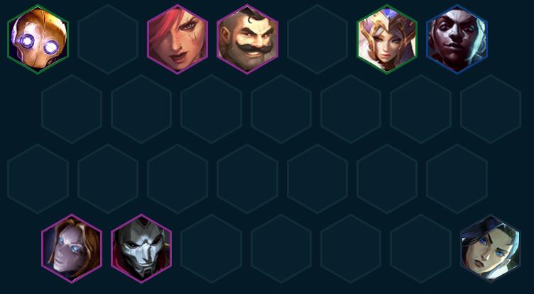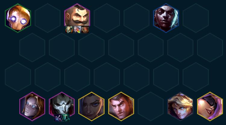 决赛圈上九挂杰斯加速后排金克丝和泽丽启动,注意阵容和敌方的对位,布隆对位最密集格子尽量控制到更多的人方便后排输出,泽丽、金克丝、杰斯三个中有两个二星就能轻松吃鸡。