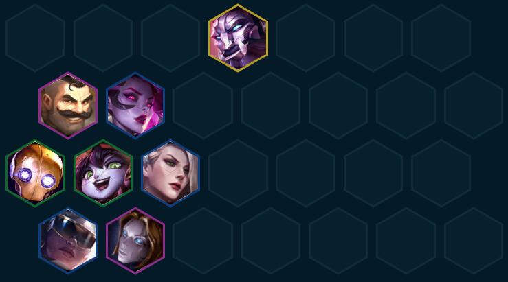 4-5/5-1看情况上八,大搜直至开出4白魔4保镖阵容就刚好成型,如果金克丝来的早也可以选择拆保镖转白魔名流金克丝,强度非常高,一般在八级搜出整体阵容二星的质量后就可以考虑上九或是在八级搜三星。决赛圈直接上九,单挂二星五费,塔姆、金克丝、泽丽、杰斯都可以选,阵容成型后的视觉效果非常好,保镖的盾和物抗加上白魔的魔抗配合上璐璐基本是无限折磨对手,可以很轻松的拖到加时赛一起扣血,有保镖转给金克丝开出6保镖甚至可以吃鸡!