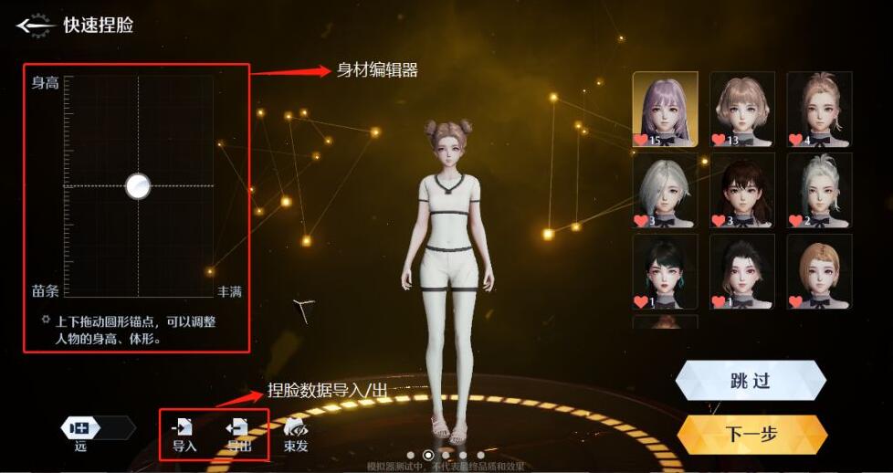 然后,在我们选择好性别后,便进入捏脸界面啦(性别可在游戏内更换,即里/表人格切换);