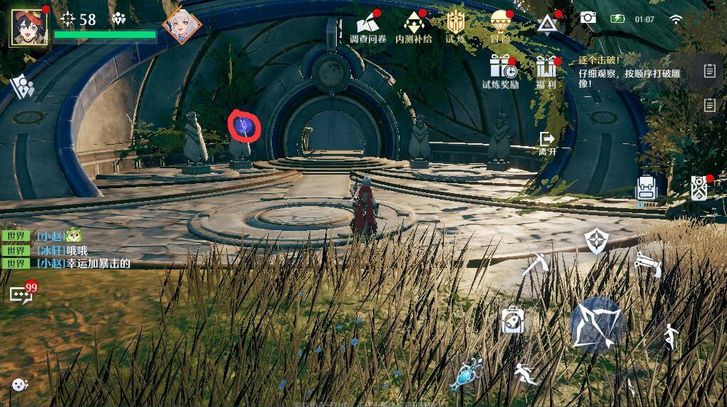 注意观察,根据石像闪光的先后顺序依次击破石像即可通关。
