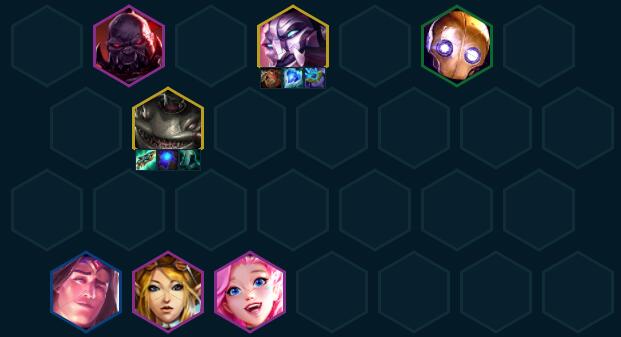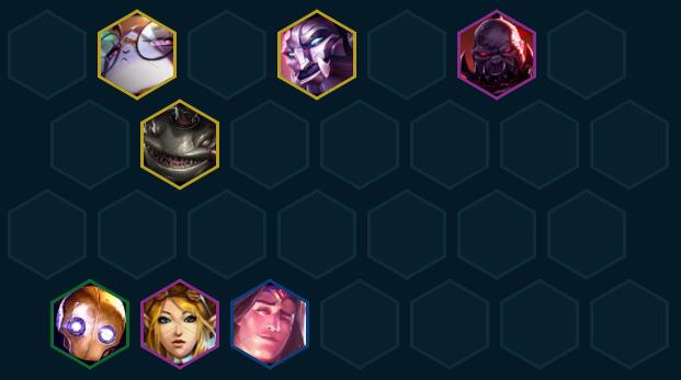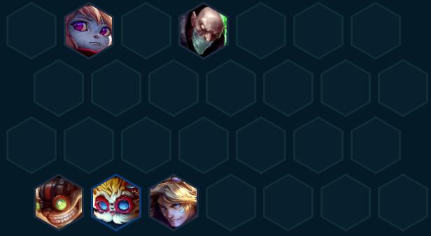 过渡推荐:波比+炼金+炸弹人+大头+EZ组成3约德尔3发明家2极客,利用约德尔的经济上人口,波比和炸弹人能3就3,输出装先做给大头打工。