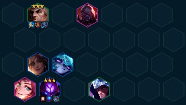 蚂蚱还差的多就先上8让阵容成型,帝国转不强求,6黑魔3帝国伤害同样很高,站位方面让乌鸦去顶挑战者、扎堆阵容的脸,有水银不怕集火,尽量不要跟狙神站对角,打刺客是小优,蚂蚱被切了乌鸦带反甲也能全收完,只要成型吃分率极高,没有特别怕的阵容。