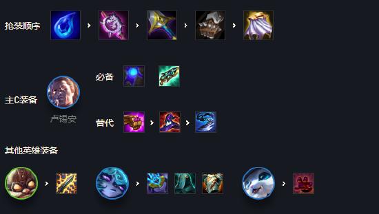 副C薇古丝:装备给上水银,石像鬼的板甲,离子备选龙牙,反甲。