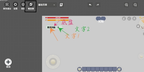 然后创建一个底盘和文字一和文字二(文字1为复活次数:)(文字2为0)