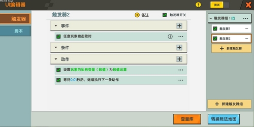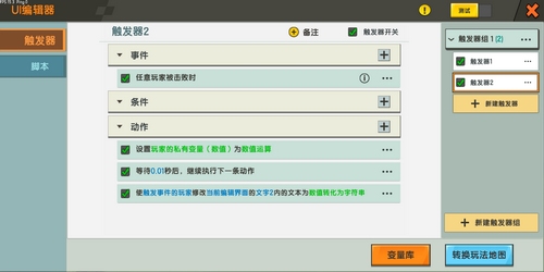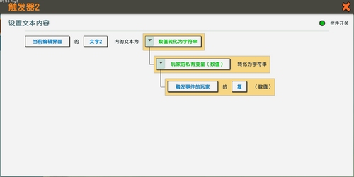 动作三:使触发事件的玩家修改当前编辑界面的文字2内的文本为数值转化为字符串