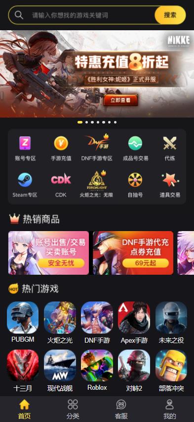 2、进入官方折扣充值平台网站后,你需要在网页的顶端搜索栏中输入你想要充值的游戏名;
