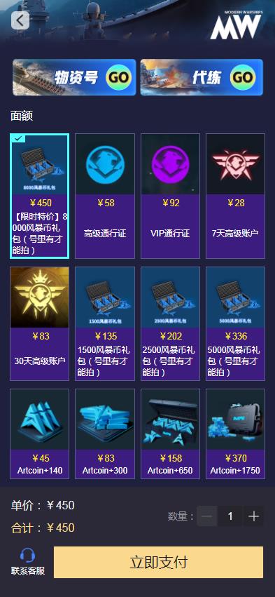 现代战舰国际服代充用哪个平台会比较靠谱呢?对于这款战舰玩法的战争游戏,如果你没有靠谱的装备只能算得上一个陪练。想要提升自己的军事实力,充值是必不可少的,如果你想挑战更多的高手,那么今天52小编给大家带来的国际服折扣充值平台一定是最划算的!