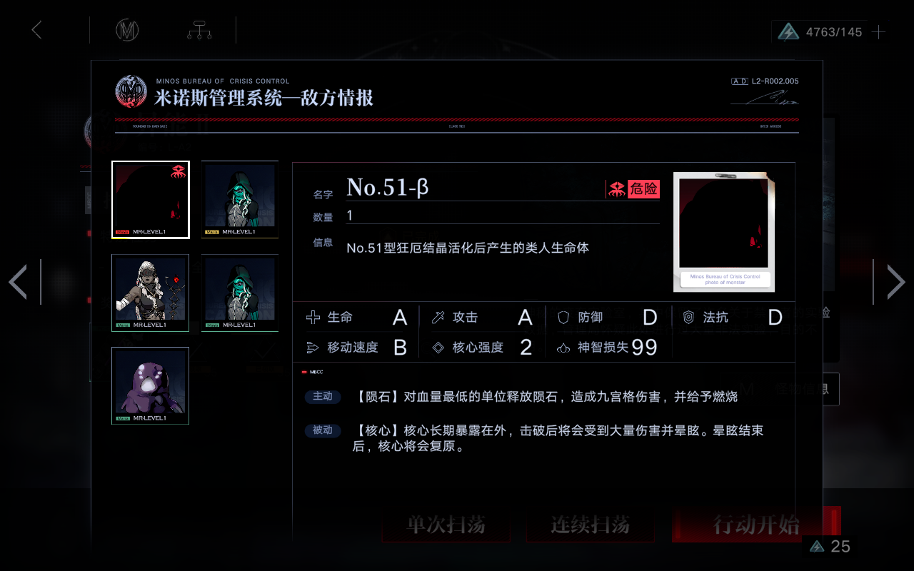 难度2时,BOSS为【No.51-β】,其原型是参考【高危级禁闭者——伊格尼】