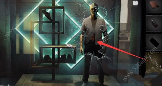 2、使用鹿角砸开左侧展示柜的玻璃找到玻璃碎片刮开人偶得到ID卡,然后连接电源,注意展示柜的玻璃碎片不要遗漏。