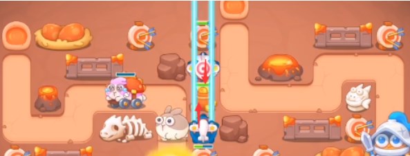 2、开局会自带一个飞机,我们再放置一个飞机锁定道具,打不到的普通兔子走到右侧之后解除锁定道具。