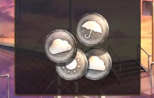 2、将把手塞入远处的自动售票机按下,得到4枚有天气图案的硬币;