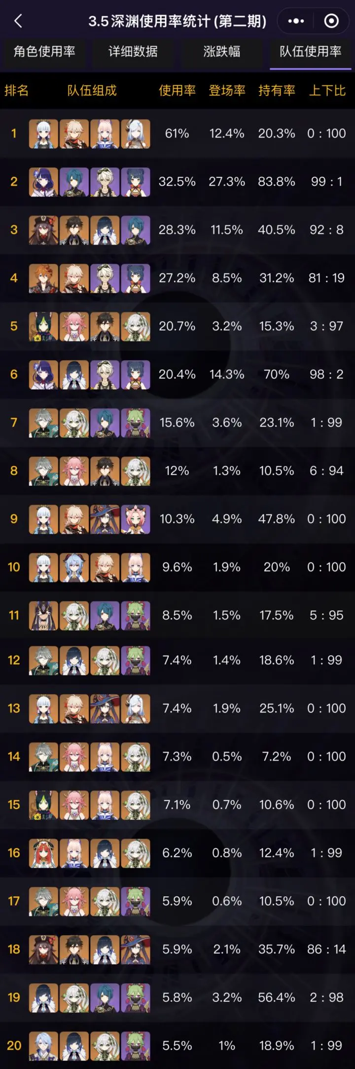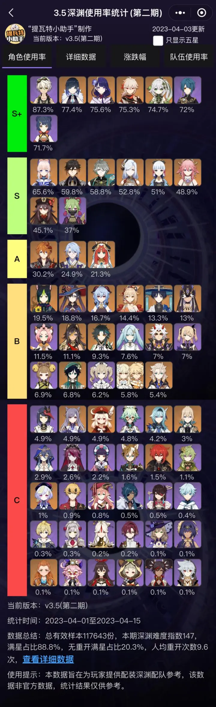 2.玩家对3.5深渊逐渐适应,角色的选择更加成熟
