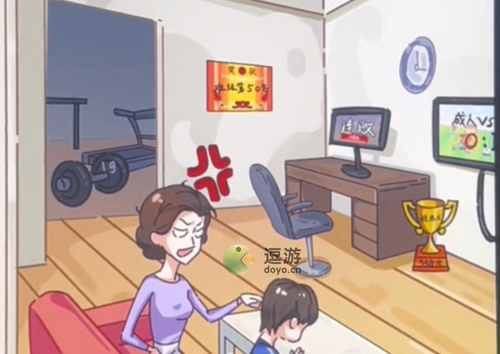 8.点击房门就能看到一克的杠铃,最后滑动客厅里面的奖杯,发现奖状上是被甩王。