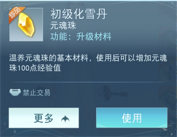 有了元魂珠后,可以使用化雪丹提升元魂珠的等级,还可以使用各种杂物提升元魂珠的能量等级。提升等级和能量等级都可以大幅提升元魂珠的属性。