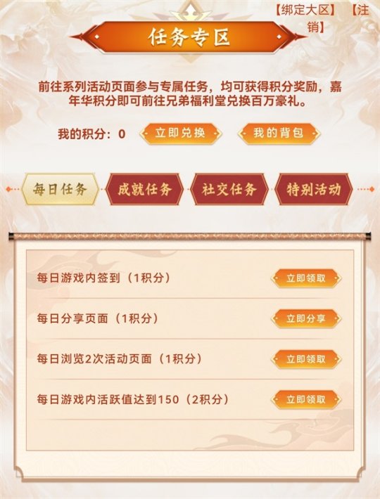 有活动必然有豪礼!在嘉年华活动主站,各位少侠可参与各类嘉年华活动领取积分!
