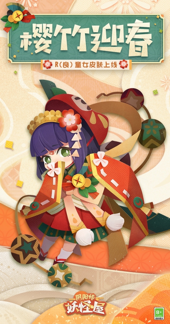 『童女·樱竹迎春』皮肤在游戏内上线,家主可通过全新福气垂钓活动获得。